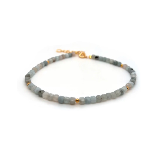 Dette elegante armbånd fra Scrouples er fremstillet i sølv forgyldt, med smukke akvamarinsten. Armbåndet er 17 cm langt med en ekstra forlængerkæde på 2 cm, hvilket sikrer en perfekt pasform. Det er et stilfuldt og tidløst smykke, der tilføjer et strejf af elegance til ethvert outfit.
