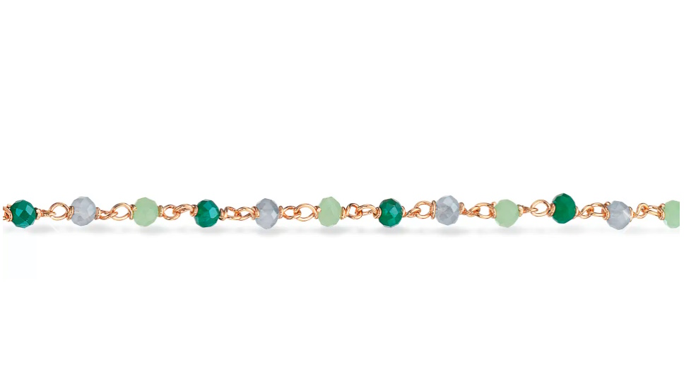 Dette armbånd fra Scrouples er designet med en blanding af grønne krystaller og er forgyldt i sølv. Det er farverigt og iøjnefaldende smykke, der tilføjer et elegant touch til ethvert outfit.