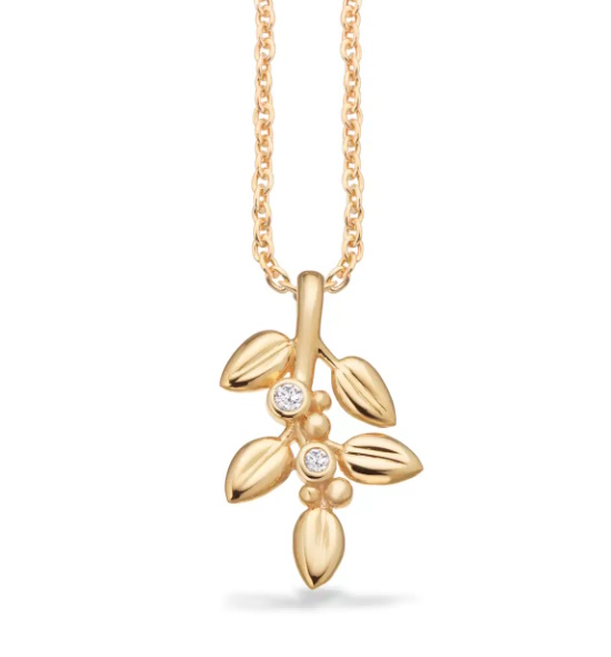 Halskæde Blade med Cubic Zirkonia og vedhæng i 8 kt Guld