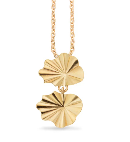 Denne halskæde fra Scrouples har et plisseret vedhæng i 8 karat guld, kombineret med en sølvforgyldt kæde. Den tilbyder et elegant og sofistikeret udtryk, perfekt til at tilføje et strejf af luksus til ethvert outfit.