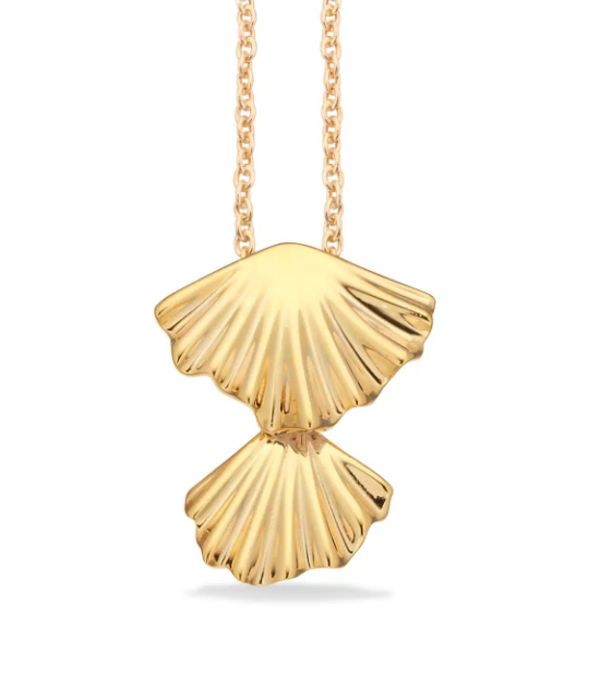 Halskæden fra Scrouples er fremstillet i sølv og forgyldt. Den har et plisseret design , der ligner to muslinger, der hænger. Den er designet til at være et unikt og iøjnefaldende smykke.