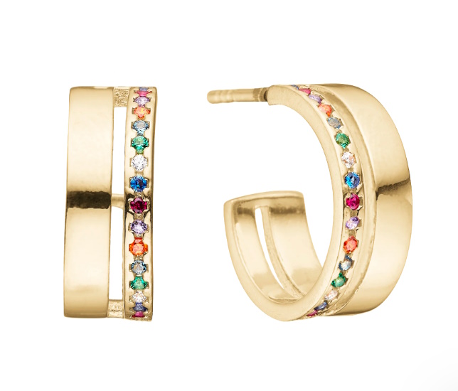 Oplev Aagaards 18 karats forgyldt creoler, smukt prydet med strålende kulørte cubic zirkonia sten. Disse unikke smykker forener tidløse elegance med en moderne twist, og tilføjer et sprudlende element til din stil.