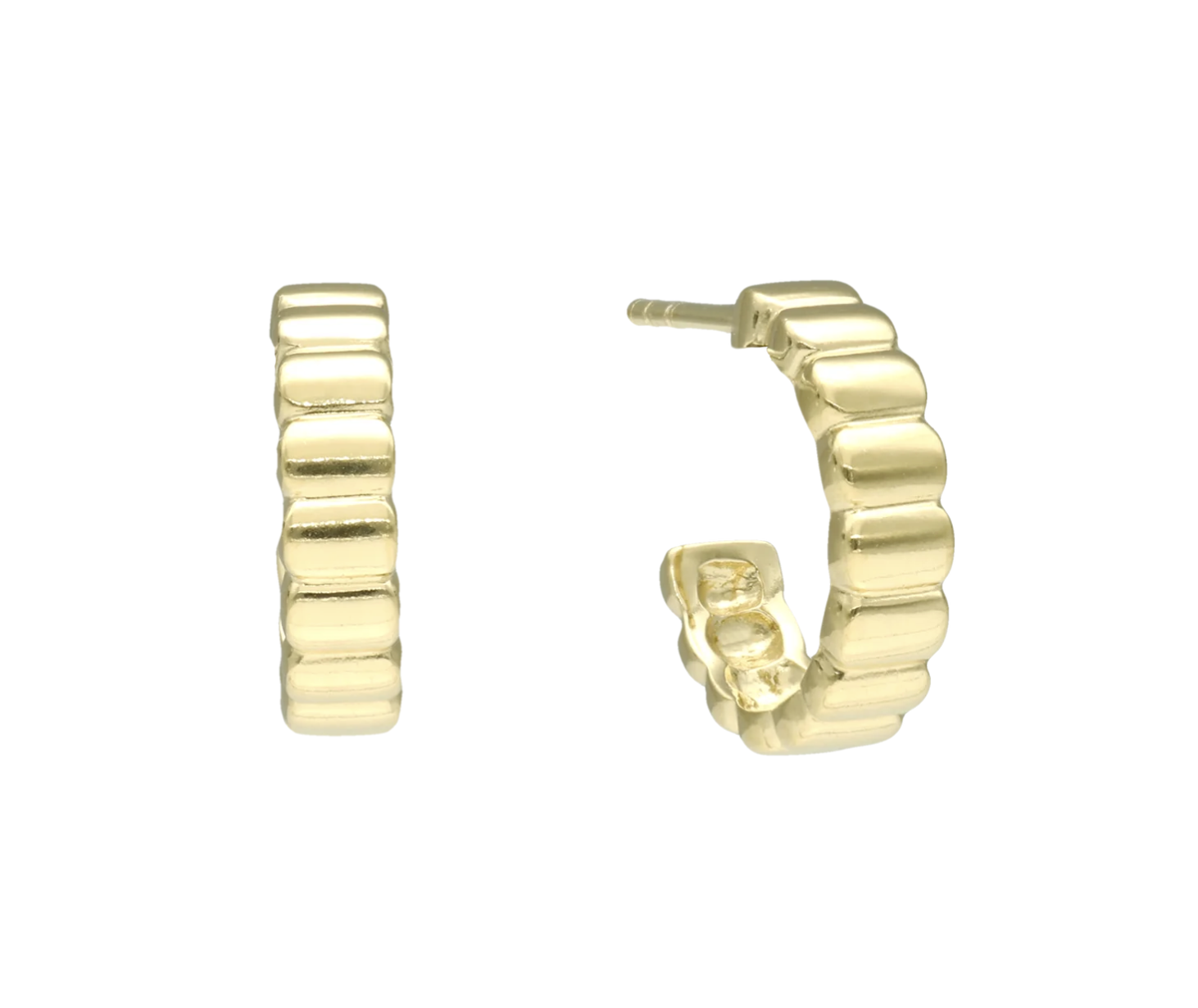 Et råt og raffineret twist på den klassiske hoop – disse forgyldte øreringe har en karakteristisk kantet struktur, der giver en moderne og iøjnefaldende effekt. Designet balancerer det elegante med det markante og passer perfekt til dig, der elsker detaljer med attitude. Brug dem alene som statement eller kombiner med andre for et lag-på-lag look.