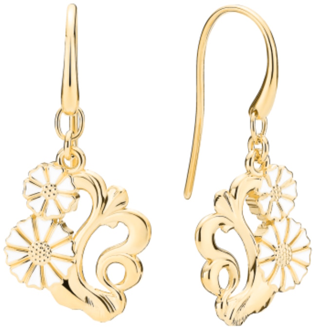 Marguerit Ørehænger Filgran, Hvid Emalje, 24 kt forgyldt