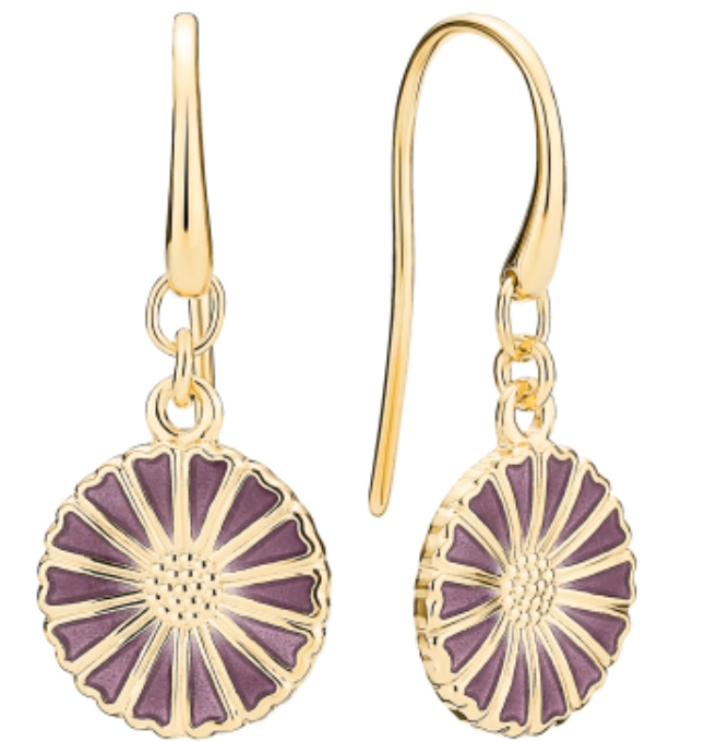 Marguerit Ørehænger Lilla Emajle, 24 kt forgyldt
