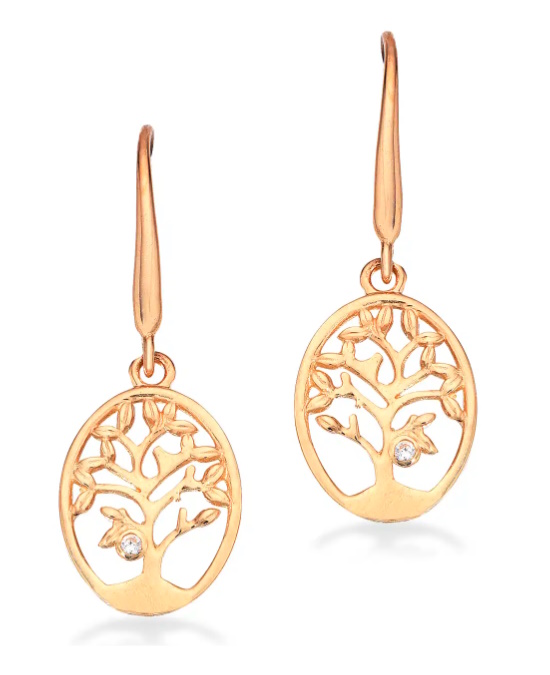 Ørebøjler Livets Træ oval med zirkonia i 8 kt. guld