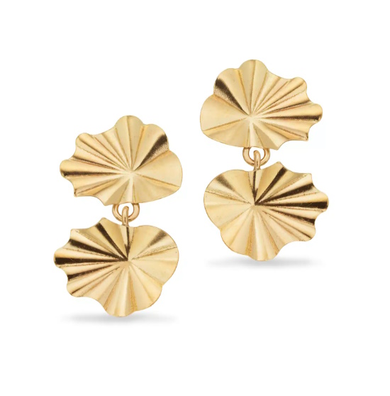 Disse ørehængere fra Scrouples er designet i 8 karat guld med et plisseret design. De tilbyder et elegant og stilfuldt udtryk, der er perfekt til at fuldende ethvert outlook.