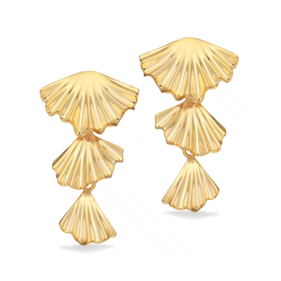 Disse ørehængere fra Scrouples er fremstillet i sølv og forgyldt. De har et plisseret design, der ligner tre muslinger der hænger. De er designet til at være unikt og iøjnefaldende smykke.