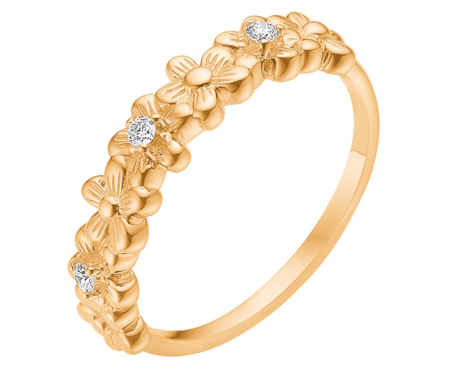 Denne Lund Copenhagen ring er et luksuriøst smykke, der kombinerer 8 karat guld med et blomsterdesign og diamanter. Ringen er prydet med tre diamanter på hver 0,02 karat, med en W.Si-klassificering, hvilket sikrer en smuk glans. Designet er elegant og tidløst, perfekt til at tilføje et strejf af luksus til enhver lejlighed.