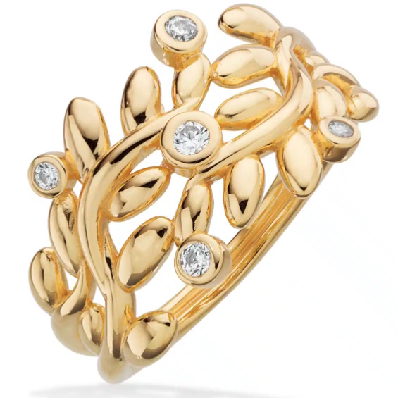 Denne Scrouples damme ring er et smukt smykke, der kombinerer forgyldt sølv med cubic zirkonia . Ringen er designet i form af blade, hvilket giver den et naturligt og elegant udtryk. Cubic zirkonia tilføjer et strejf af glans og gør ringen velegnet til både hverdagsbrug og særlige lejligheder.